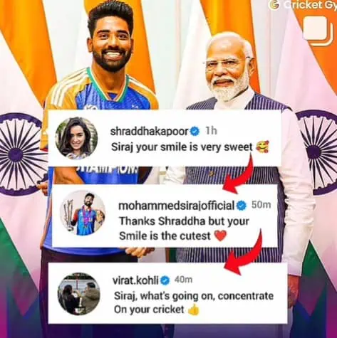 But amid the festivities, attention was drawn to a staged instagram exchange involving mohammed siraj and Shraddha Kapoor. A fan-made video showed remarks that were purportedly edited from Shraddha and Siraj's accounts, praising each other's grins. Remarkably, another edited statement said to be from virat kohli advised Siraj to concentrate on his cricket game.