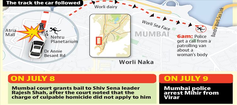 Kaveri Nakhwa (45), who was riding in the passenger seat, died when the luxury vehicle driven by Mihir is said to have crashed into a two-wheeler from behind in the Worli neighborhood of south central Mumbai on sunday morning. Her husband Pradeep, however, is said to have survived with minor injuries. According to the police, Mihir Shah then left his car and driver behind in an auto rickshaw and fled from the Kala nagar area, arriving at his woman friend's home in the suburban Goregaon region. According to a senior police official, the buddy called Mihir's sister, who made it to Goregaon and picked up Mihir and his companion at her Borivali home.