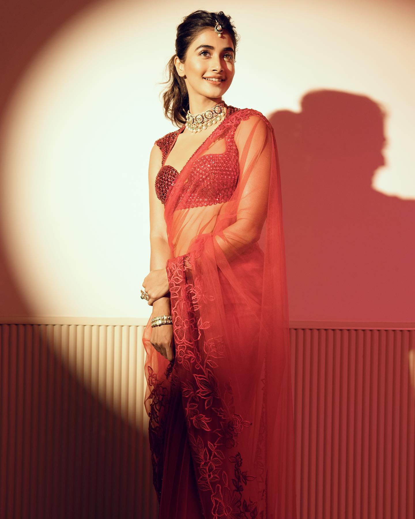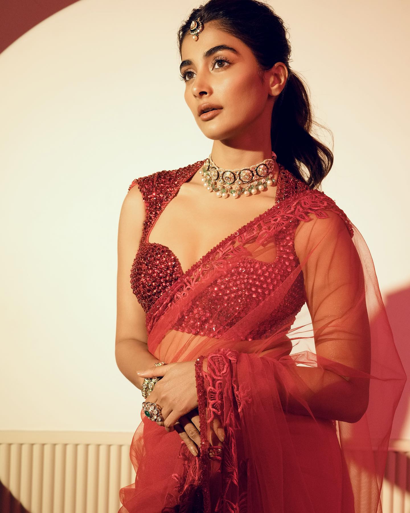 Pooja Hegde, an acclaimed actress in the indian film industry, is renowned for her impeccable fashion sense, particularly when it comes to sarees. Her saree fashion embodies a blend of traditional elegance and contemporary chic, making her a style icon for many.