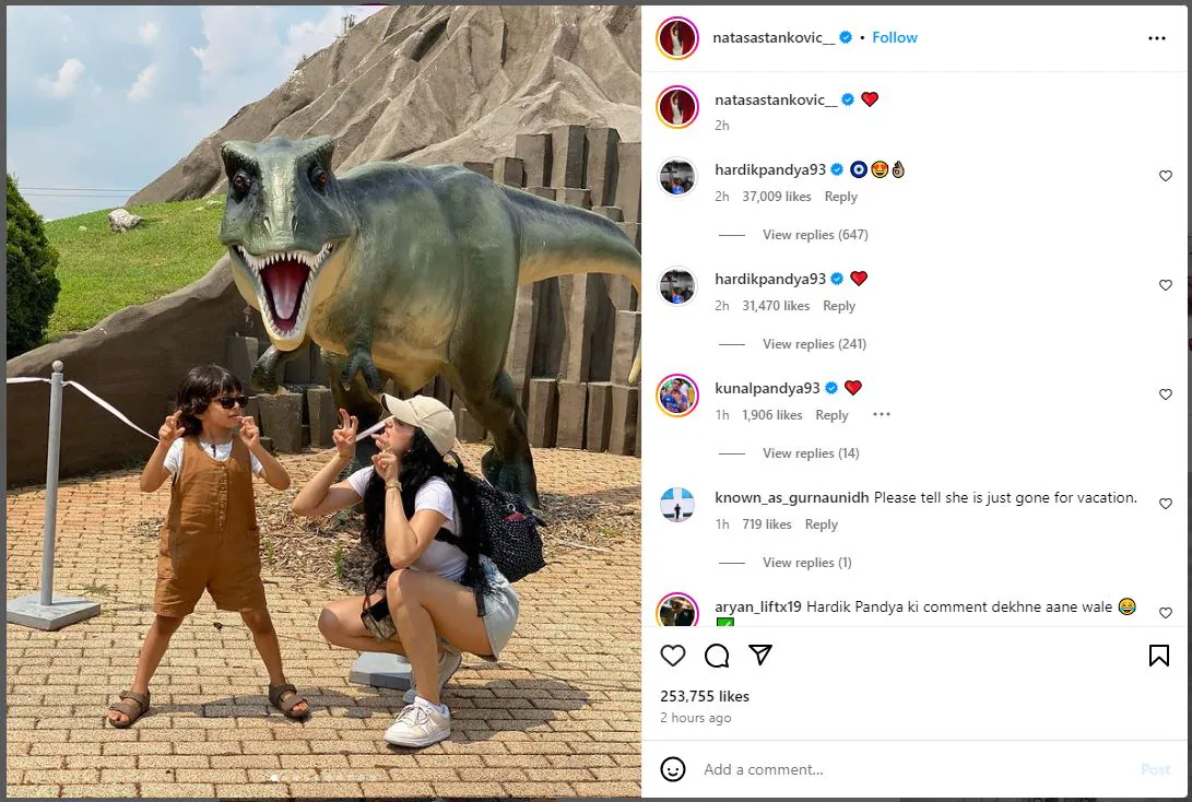 Recently, Natasa and their son agastya took a plane to Serbia. The model-actor shared pictures from her trip to serbia on Wednesday. Pandya used a slew of emoticons to respond to the article. social media users are grateful for the gesture. A user said, "Haridika Pandya deserves respect." After Natasa said she was divorcing Pandya, she became the focus of internet trolls.