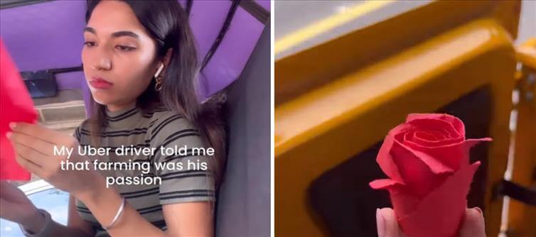 People frequently have unexpected encounters with strangers in the busy pace of city life. Recently, Avi krishna Natesan, an instagram user, experienced a situation while riding in an uber autorickshaw. She found out about the car driver's fondness for flowers throughout their talk. Her next action is quite endearing. She used paper to make a rose, which she gave to the driver. His amazing expression of astonishment and joy is what adds to the video's heartwarming quality.