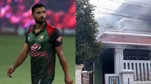 The house of former bangladesh cricket team captain Mashrabe Mortaza was looted and set on fire by rioters. bangladesh is currently experiencing a massive student-initiated riot. bangladesh Prime minister Sheikh Hasina fled the country and took refuge in india after the riots that have been going on for the past few months. Rioters ransacked Sheikh Hasina's house. They looted many of the goods there. The rioters also ransacked the house of Mashrabe Mortaza, a Member of parliament from Bangladesh's ruling Awami League party. They took all the things from his house and finally set the house on fire.