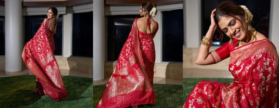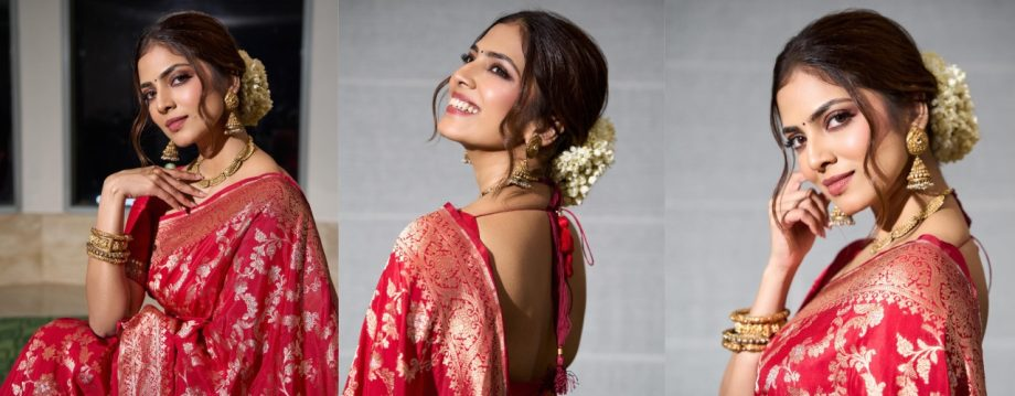 malavika Mohanan's attention. Recently, she made waves in a gorgeous bridal Banarasi saree that embodies the classic grandeur and grace of traditional