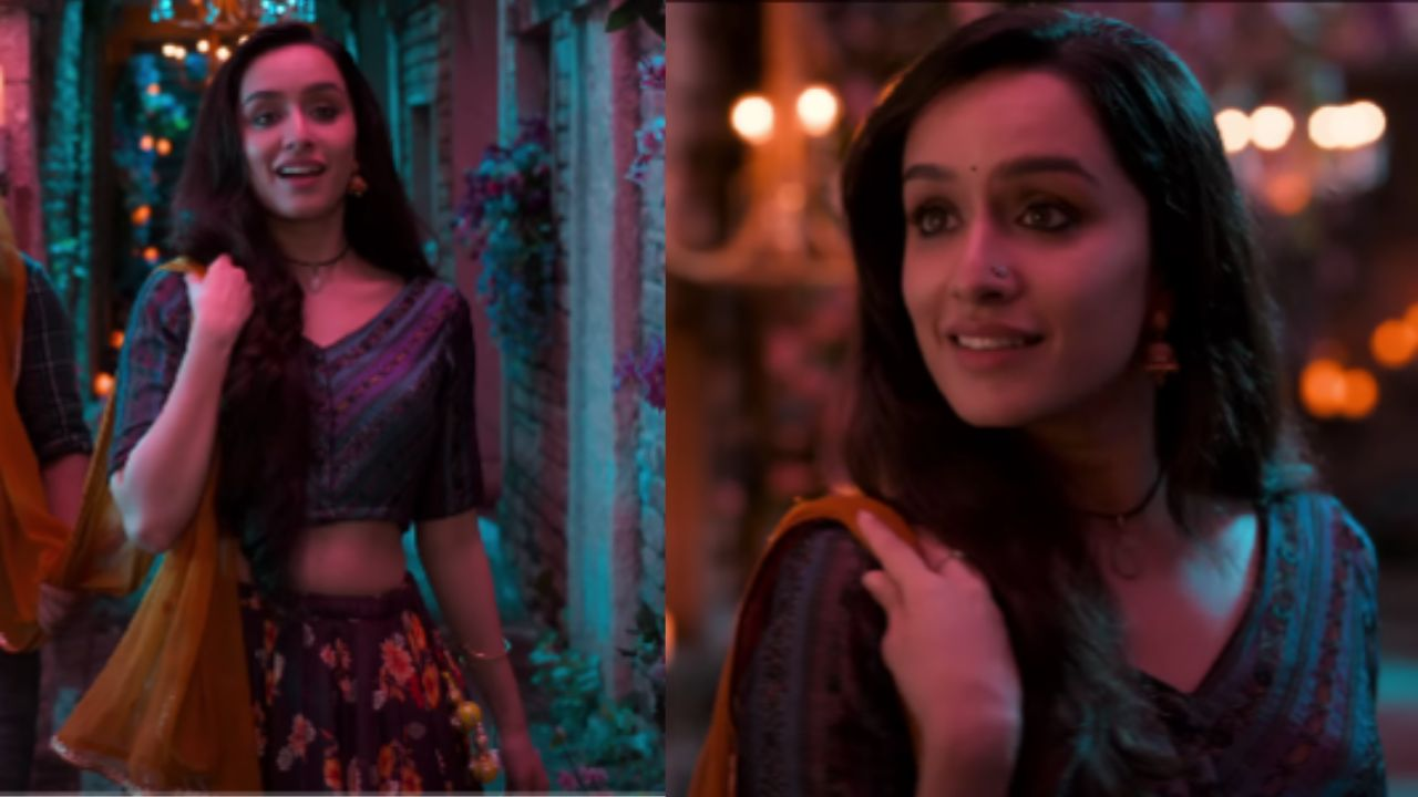 During the song Tumhare Hi Rahenge Hum, Shraddha Kapoor is seen sporting a lehenga with floral prints. She accessorized it with a yellow dupatta that Vicky (Rajkummar Rao) had sewed for her in the last film, along with an embroidered choli. With her long hair left open, Shraddha finished the look with her signature kohled eyes, a little bindi, and jhumkas. Kapoor will appear more often in the film wearing simple kurtas with intricate embroidery all over them. Her nostril rings were another item that caught our eye. Aside from jhumkas, the actress added several oxidized nose rings to her outfits.