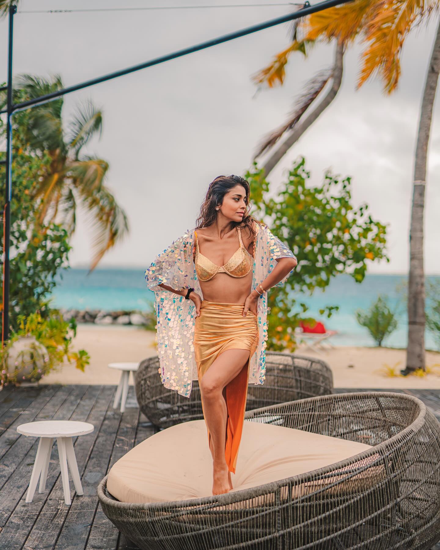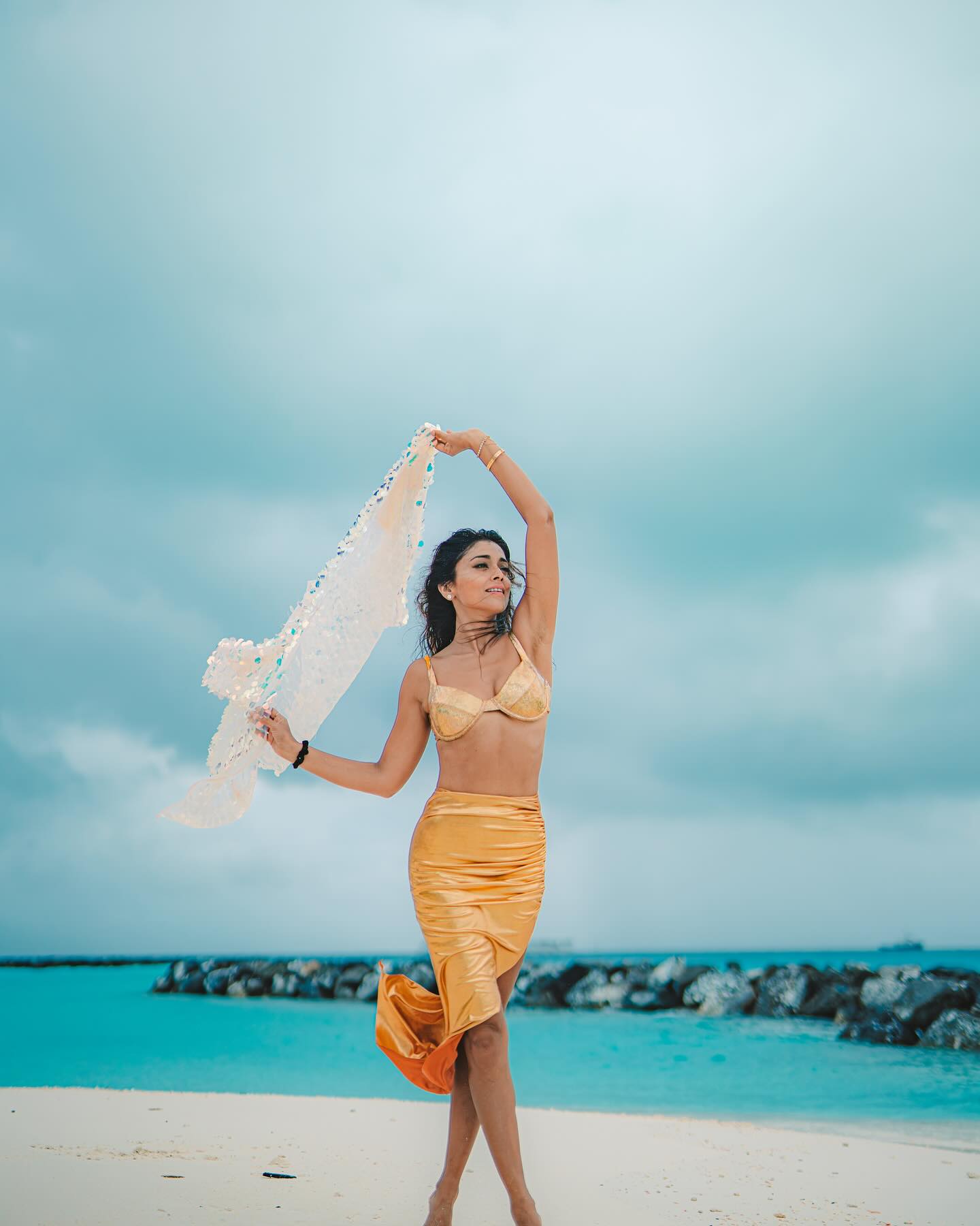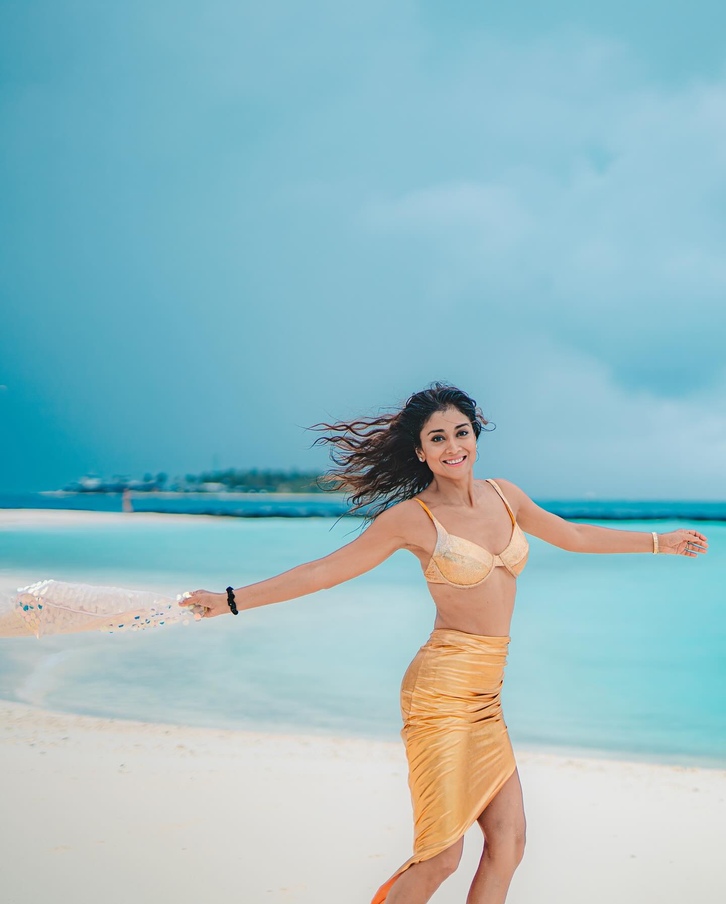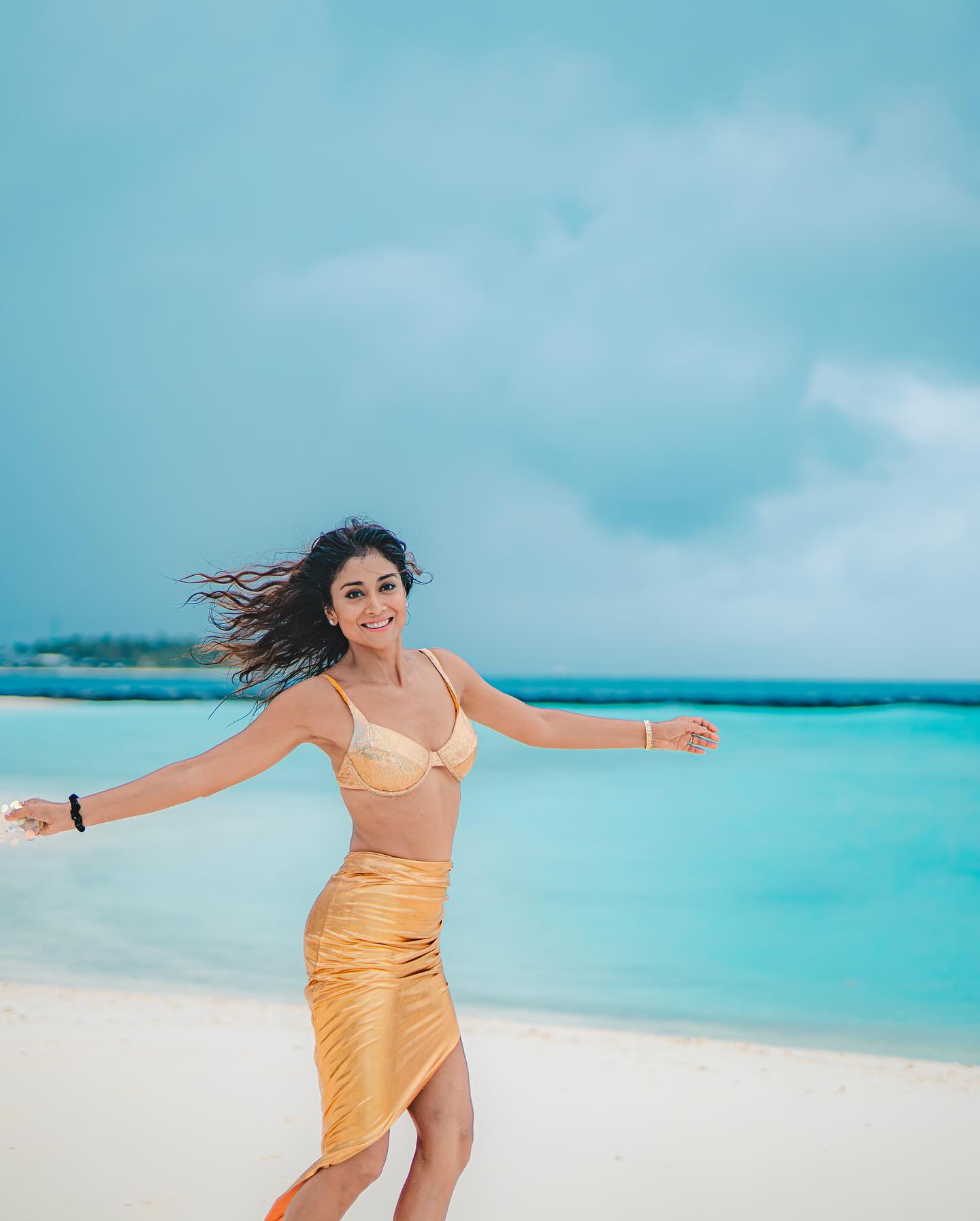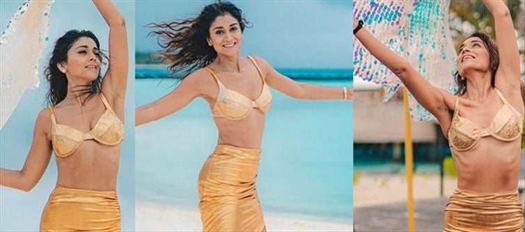 Shriya is renowned for her breathtaking beauty, which frequently makes others jealous. She looks amazing and never gets old. Her brilliance and charisma have won many people over. She's in her forties, yet she looks younger than ever. To the amazement of her supporters, she has, nevertheless, suddenly taken on an extremely slender, nearly skeleton appearance. She donned a shiny two-piece dress that emphasized her slender physique in a recent picture session. A lot of people on social media have said that she needs to think about putting on some weight in order to seem healthy. With photos like these, Shriya stays in touch with her followers and maintains her status as a leading personality in the indian entertainment sector. However, based on comments made on her most recent images, many on social media have advised her to gain a little weight after reaching 40 to prevent seeming too thin or ill. The actress, who is renowned for her exquisite taste, is giving us serious holiday envy as she celebrates her daughter Radha's birthday in style. Wearing a golden bikini that shimmers and is veiled with a sheer throw, Shriya looks stunning as she strikes sensual postures on the immaculate beach. Her glowing grin and sun-kissed complexion are the ideal accents to her glitzy appearance.