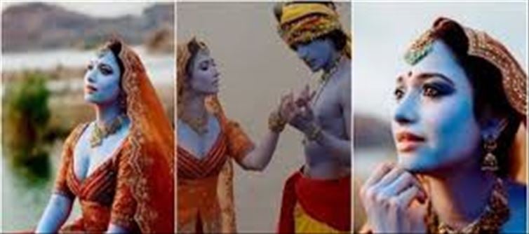 Tamannaah Bhatia recently portrayed Radha's devotion (Bhakti) in a photograph that showcased the stages of love for Lord Krishna. This image also reflects the topic of the new Janmashtami campaign, which is "Deewanagi or madness" of love. "Her reflection is Krishna, her shadow is Krishna, her name is Krishna, she looks at her arms and they seem blue to her," reads a portion of the description that explains the concept behind the surreal pictures. Radha is the moon's brightness if krishna is the moon.