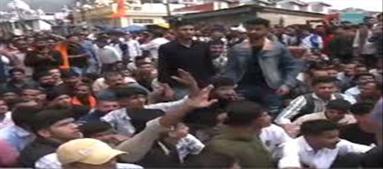 A large number of people from Hindu organization gathered in Sanjauli area on thursday in Himachal Pradesh's capital Shimla. These people protested against the mosque built in Sanjauli and the people coming from outside states without verification. shimla police stopped the protesters at Sanjauli Chowk itself. There was no permission from shimla police to protest here. In such a situation, these protesters wanted to protest near the mosque, but later they were sent to Dhali tunnel and Hindu organizations protested here.