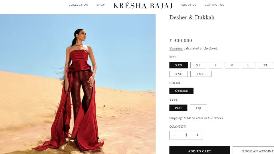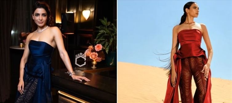 Samantha donned a Nephthys collection piece from the designer label Kresha Bajaj for the Citadel screening. The group is known as Desher & Dukkah. Samantha's blue version was made especially for her by the brand. On the official website, the suit is offered in red, though. It is valued at ₹3,000,000.