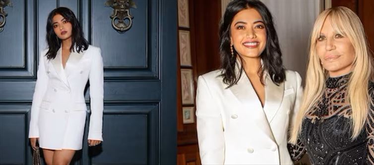 With this accolade, rashmika becomes the second indian star to do so, after priyanka Chopra. Following her two straight performances at the Versace Spring-Summer fashion show in Milan, where she has been making a big impression on the world stage of fashion, comes the follow. rashmika looked stunning at the Milan event wearing a stylish black corset top and eye-catching blue pants, effortlessly fusing sophistication with flair. With a modern black jacket thrown over her shoulders, she finished the ensemble with a carefree grace.