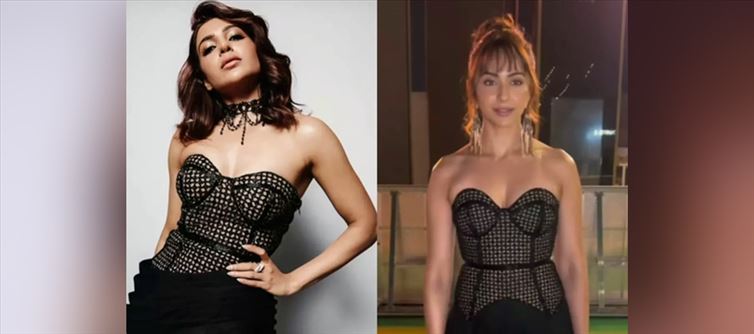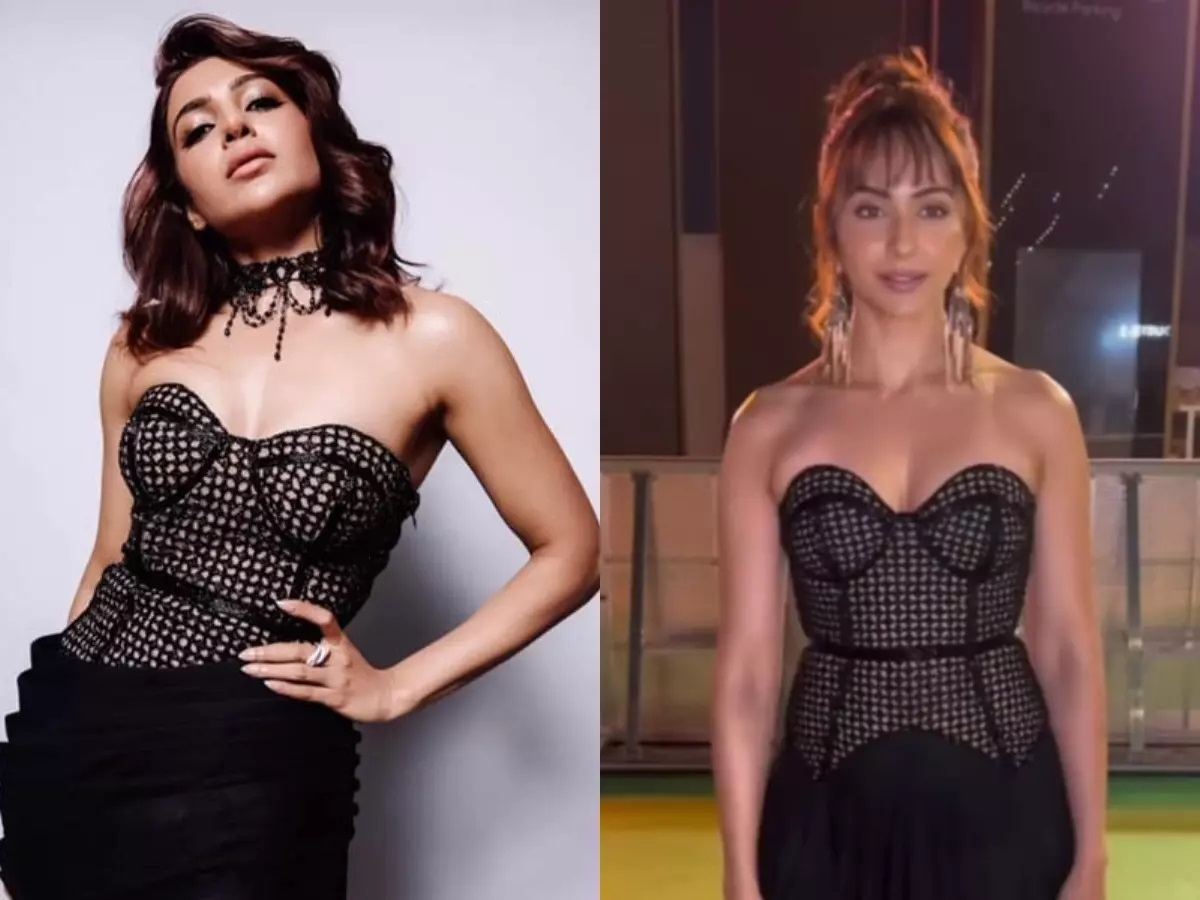 But as soon as actress rakul preet singh appeared on the red carpet, something familiar about her black off-the-shoulder gown struck. Her glitzy ensemble had striking similarities to samantha Ruth Prabhu's upcycled wedding gown from earlier this year.