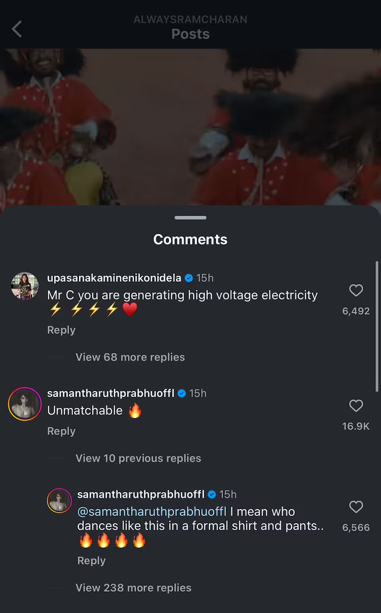 Upasana shared a comment and wrote, "Mr C you are generating high voltage electricity (sic)," with a series of lightening and heart emojis.