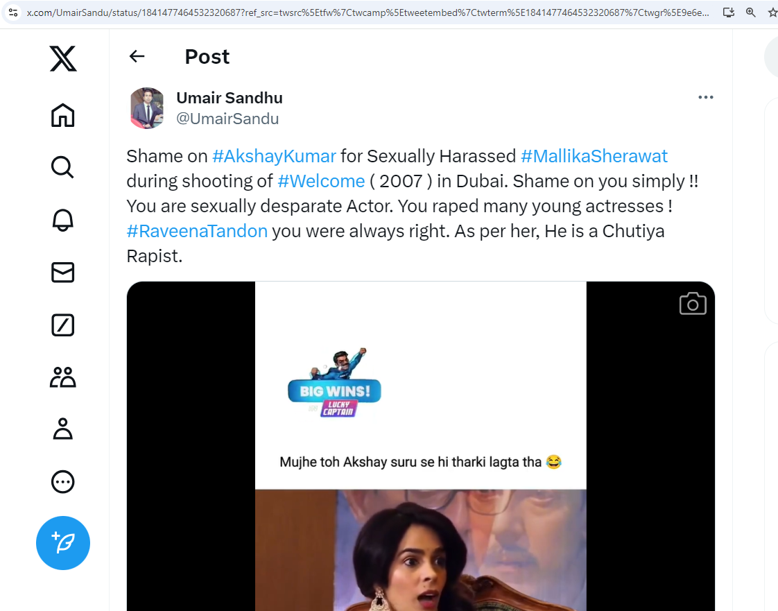 Several on social media surmised that the movie may have been Welcome (2007), a movie in which akshay kumar starred, however, this has not been confirmed. mallika further disclosed that, as a reflection of the difficulties she encountered in upholding her limits, her reluctance to comply with such requests has probably led to her marginalization in the profession.