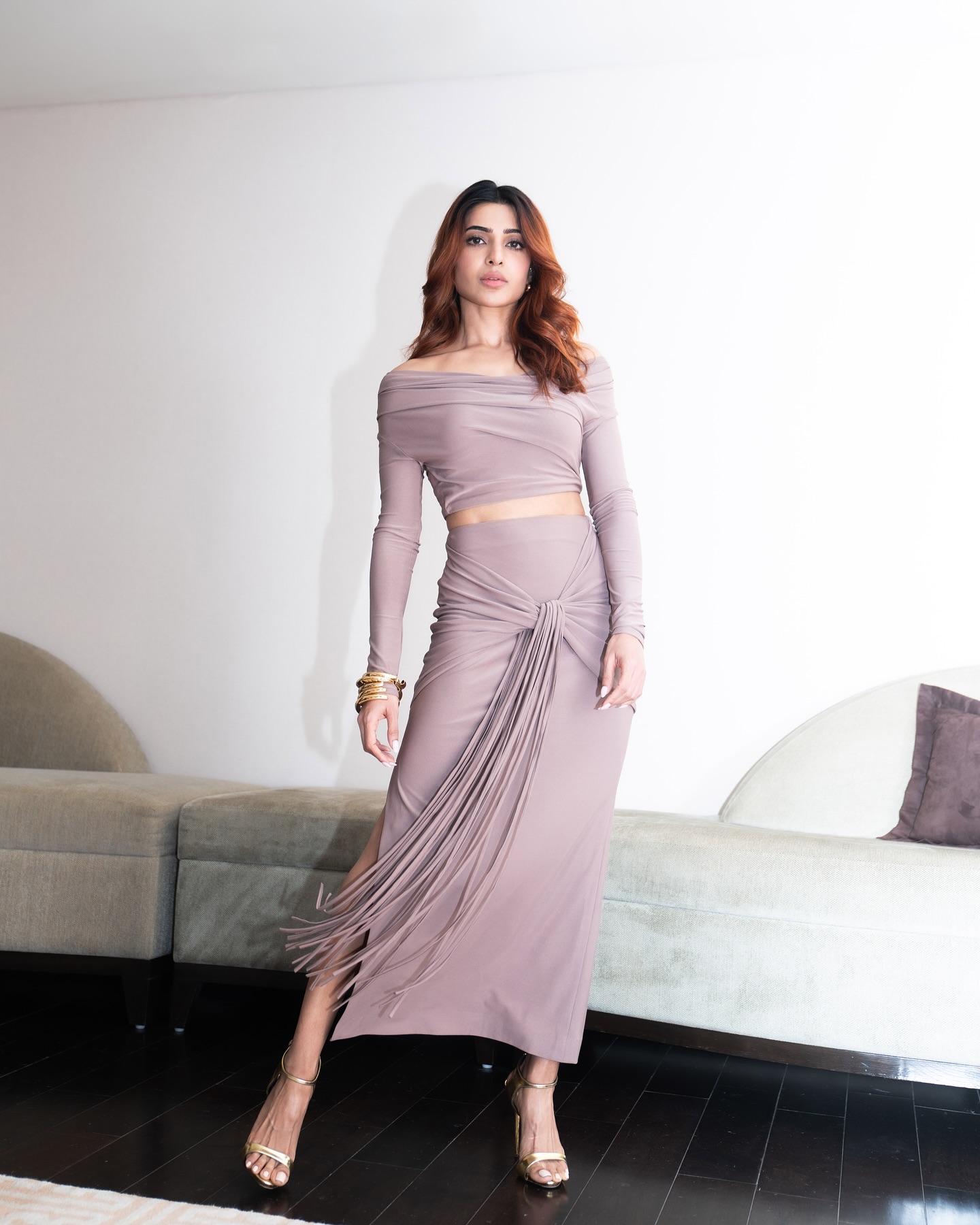 To please her admirers and following, samantha never stops experimenting with her appearance and posts about it on social media. The actress showcased her elegance in a dazzling white costume in mesmerizing photographs she uploaded last month to promote her espionage action series "Citadel: Honey Bunny".