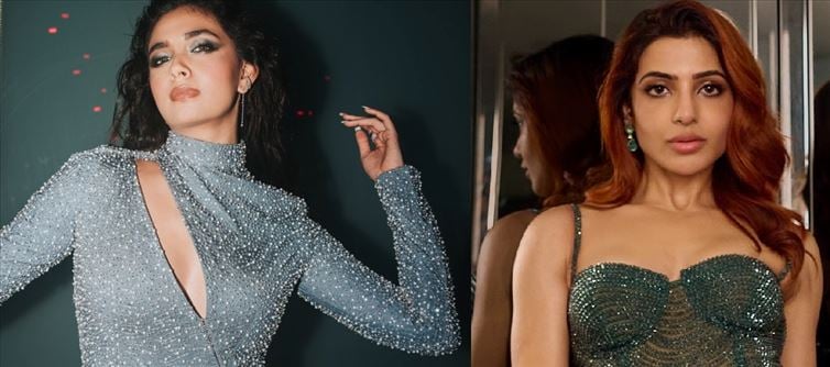 The spot-inch amp bright ombre bodycon robe that dead-accentuated samantha Ruth Prabhu's curves was stolen. In a sleeveless dress with a sweetheart neckline, she looked stunning. Green pearls were used in the gown's top section and blue pearls in its lower part. The star's makeup was finished with glittery eye shadow and sheer lipstick. The jewelry included rings and earrings made of green crystal.