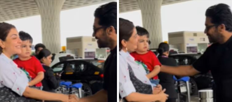 The scene opens with an astonished Kajal approaching Suriya, and the two shake hands. Kajal, holding her baby Neil, is ecstatic at the interaction. Suriya, looking just as happy, starts talking to her. gautam Kitchlu, Kajal's spouse, subsequently joins them. PS: Throughout the entire exchange, don't miss Kajal's newborn boy's endearing response.