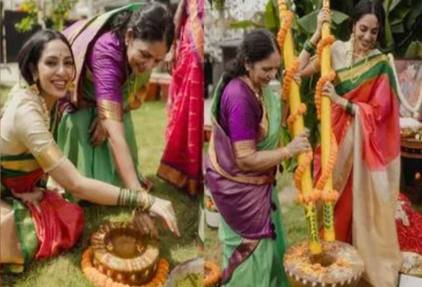 Recently, the actress confirmed the upcoming nuptials by sharing images from her pre-wedding festivities. Sobhita showcased a series of photographs from her Godhuma Raayi ceremony, a traditional event akin to the haldi rasam for brides in the telugu community. This time-honored ritual involves friends and family applying turmeric to the bride-to-be, with the women of the household preparing the turmeric for the occasion. In the images shared by Sobhita, she is seen joyfully participating in the turmeric pounding alongside other women. She wore a stunning orange silk saree with green and cream borders, complemented by a matching blouse. Her hairstyle, adorned with gajra, along with green bangles, gold jewelry, and subtle makeup, enhanced her allure. In an interview with Galatta, sobhita dhulipala reflected on her ring exchange ceremony with naga Chaitanya. She expressed that the engagement was precisely as she envisioned, devoid of unnecessary embellishments, yet inherently beautiful. Sobhita conveyed that while the event was not simplistic, it was perfect for her. She stated, "I approached the moment without significant expectations or elaborate plans. It was relaxed, simple, sweet, intimate, and warm—everything I had hoped for. When something beautiful occurs, I find no need for embellishments; the moment itself is fulfilling. Thus, I did not perceive it as simple or otherwise; it was exactly as it was meant to be, and it was perfect." Sobhita Dhulipala and naga chaitanya became engaged on an auspicious date, august 8, 2024, which holds significance related to the concept of Infinity. The couple exchanged rings at the actor's residence in Hyderabad.