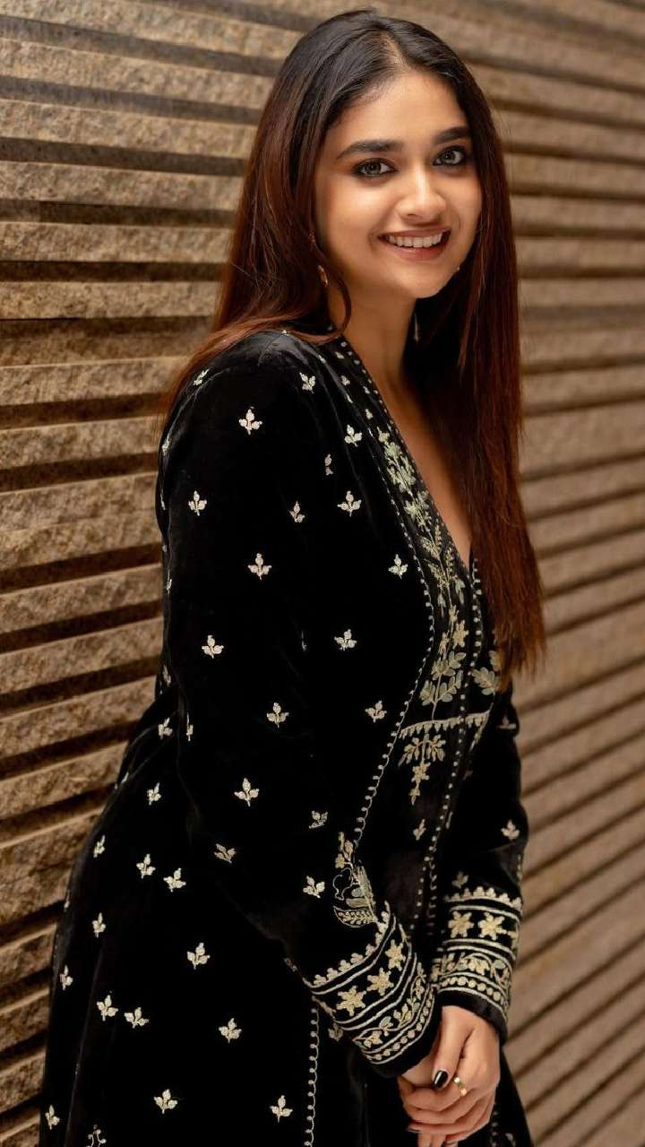 For instance, she often opts for subtle balayage or soft highlights that add dimension and warmth to her dark tresses, making her look more dynamic. Additionally, Keerthy is known for her casual yet chic updos that are perfect for both red-carpet