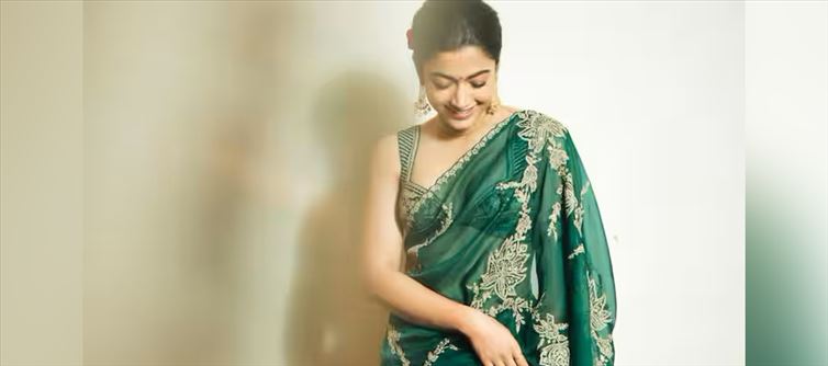 For evening weddings or receptions, Rashmika’s choice of embellished sarees can serve as a perfect inspiration. Sarees adorned with sequins, beads, or intricate embroidery can add the right amount of sparkle to your outfit. Opting for darker hues like emerald green or maroon with bold makeup can make you stand out in any crowd. rashmika often opts for sleek hairstyles that let the saree take center stage, highlighting its beauty while ensuring a polished overall look.