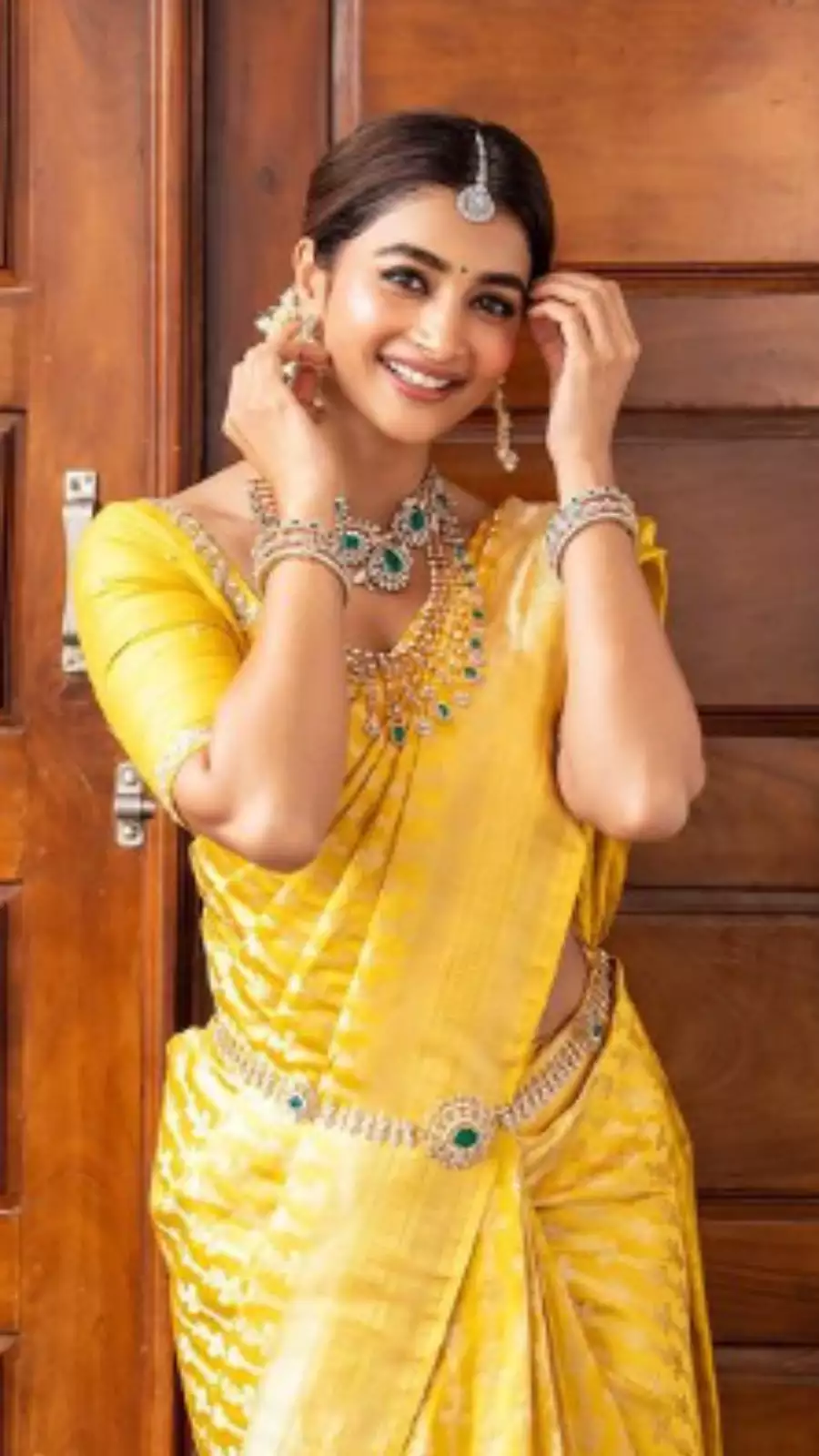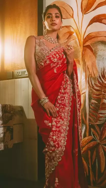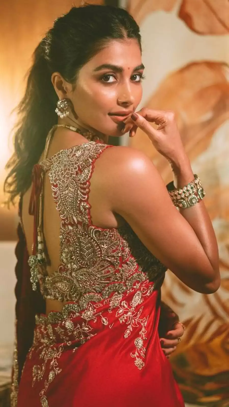 What sets Pooja’s saree choices apart is the way she pairs them with modern accessories and styling, creating a harmonious fusion of old and new. Her blouse designs often feature contemporary cuts and details such as backless, halter-neck, or off-shoulder designs, making her saree look fresh and fashionable.