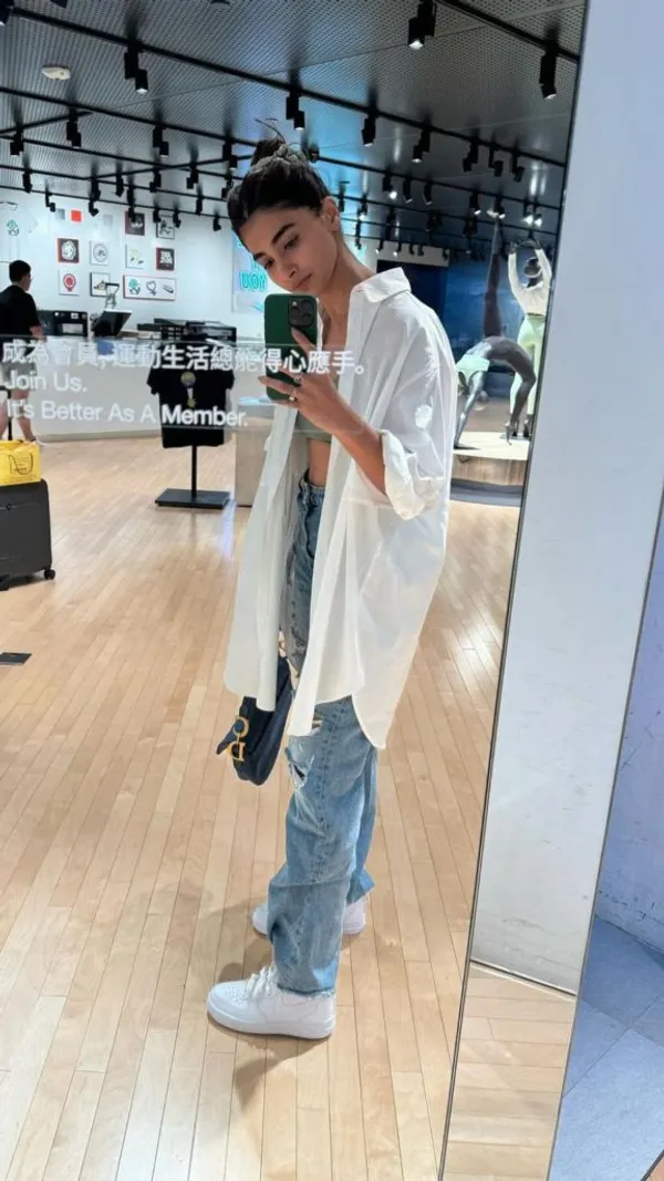 Continuing with her vacation around the city, the actress shared another selfie. While the destination remains unclear, her style is as clear as can be — chick, comfortable, and oh-so-stylish!