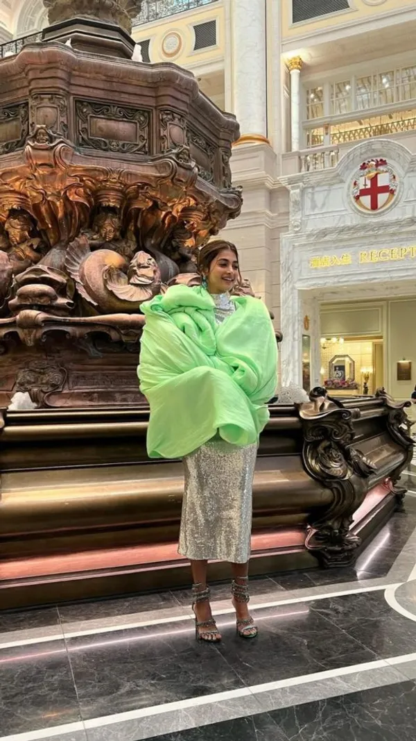 The stunning Crystal Palace at The Londoner Macao provided the ideal setting for Hegde's subsequent ensemble. Hegde was seen posing in the light-filled palatial atrium while wearing a sparkling