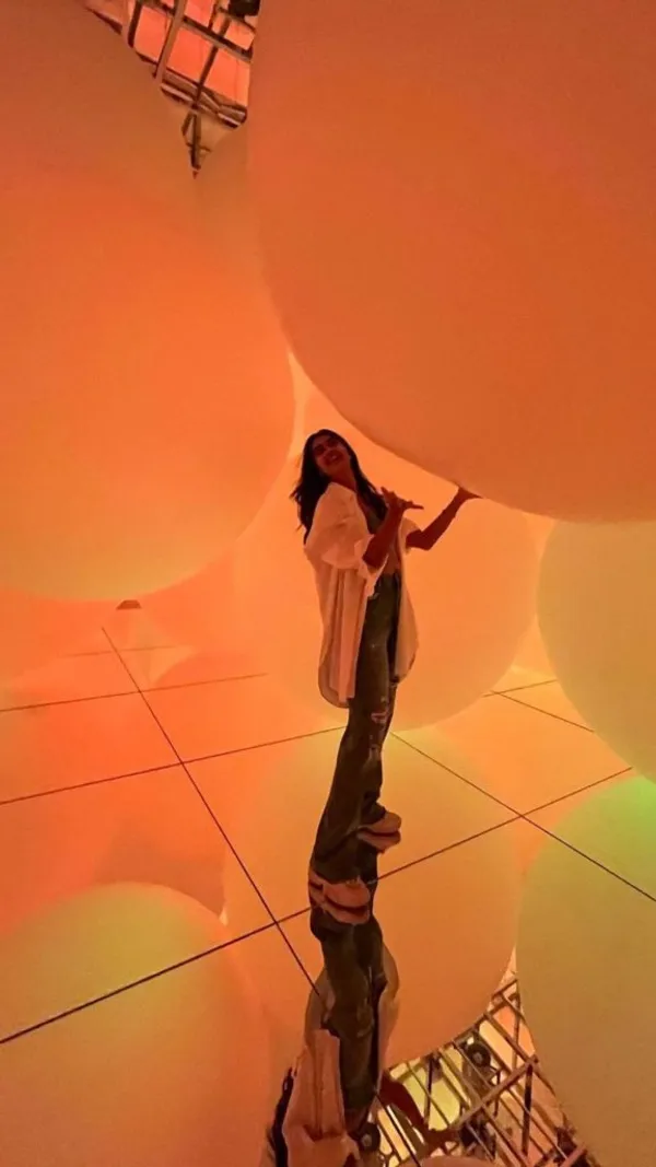 love every moment of the "body immersive" art space, which is centered around a collection of pieces that explore fresh perspectives on the world and the interconnectedness of humans and the environment. The orbs changed color as she passed through them.