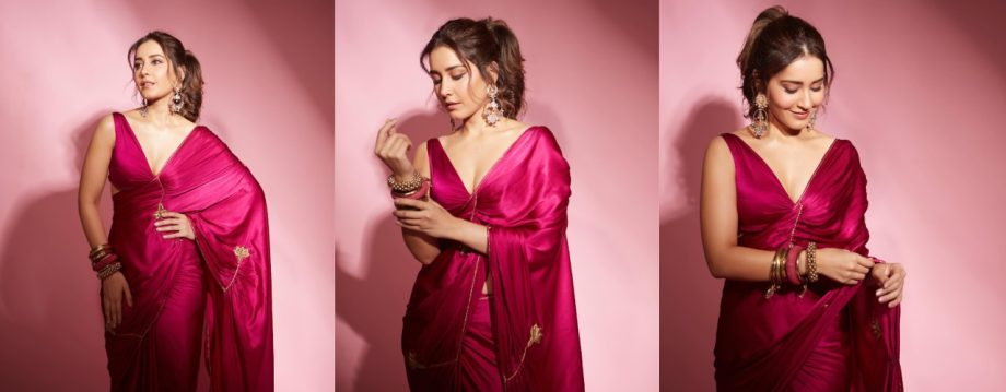 To soften the striking top, Raashii wore her hair in a neat ponytail with a few stray strands framing her face. Her