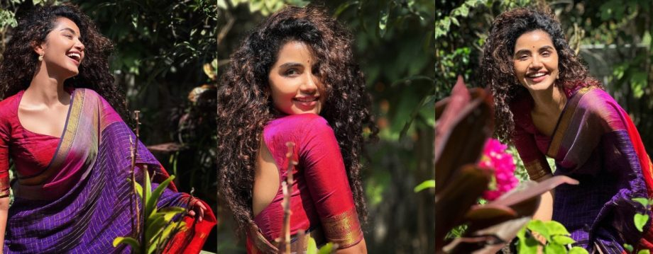 Anupama enhanced the color harmony of her traditional ensemble by accessorizing her saree with a striking blouse in matching