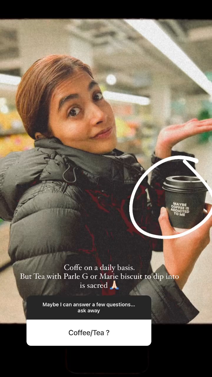 However, pooja added a sentimental touch to her response when she mentioned that tea, accompanied by Parle G or Marie biscuits to dip into, holds a special place in her heart. For her, this combination is sacred, evoking a sense of nostalgia and comfort. The mention of these iconic indian biscuits resonates with many, as they are often associated with childhood memories and family bonding moments. Pooja’s acknowledgment of this simple joy brings out the warmth and authenticity that fans appreciate in her, reminding them that even a celebrity enjoys life’s little pleasures.This Q&A session not only revealed Pooja’s beverage preferences but also offered a glimpse into her down-to-earth nature. Despite her busy career, she finds comfort in these humble rituals, connecting with her roots and cultural heritage. Her candidness in sharing such personal details further strengthens her relatability with fans, as it reminds them that no matter how far one goes in life, some things—like the love for a cup of tea with biscuits—remain timeless.