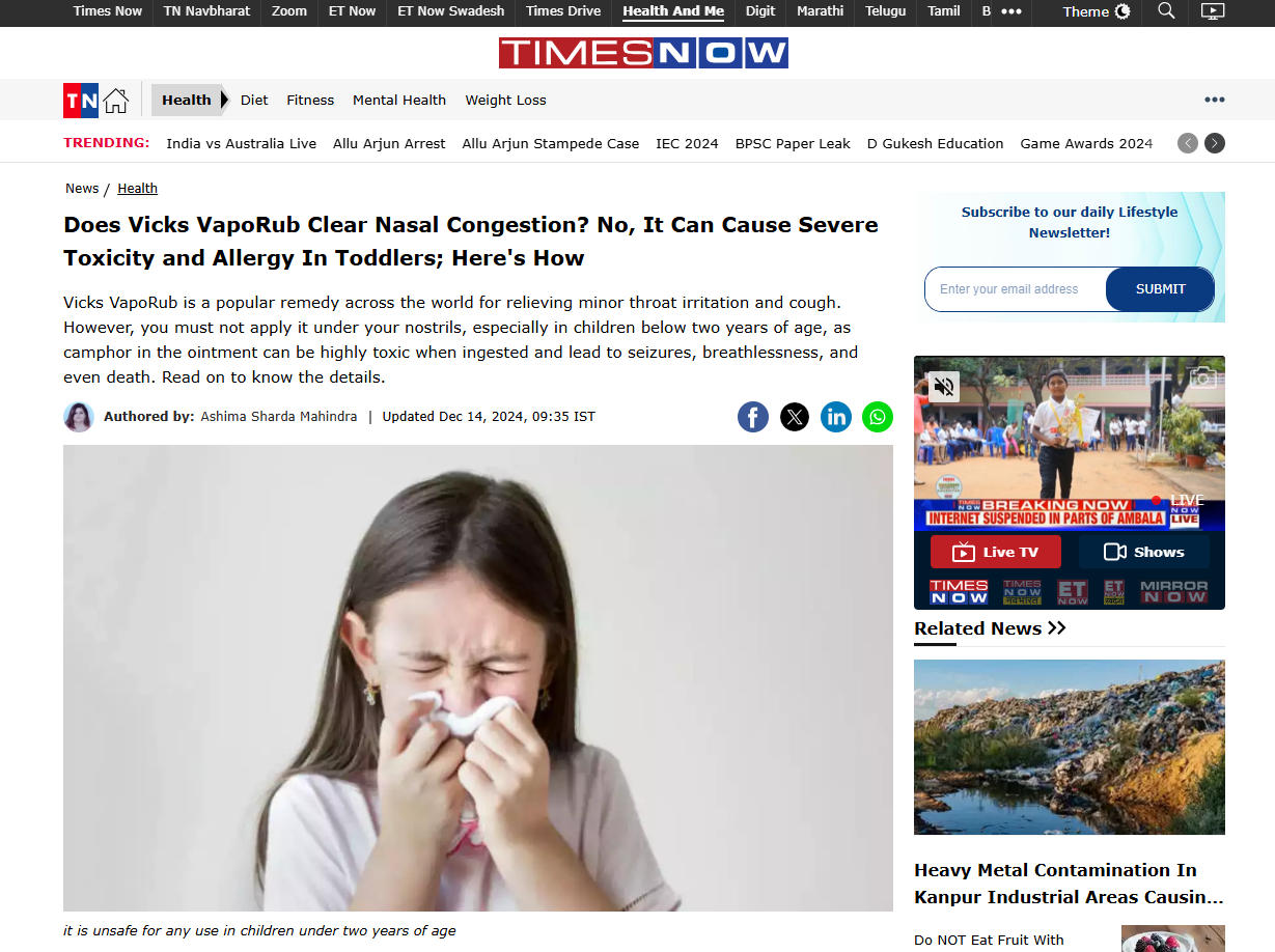 According to doctors, vicks VapoRub should be avoided for usage by those under the age of 2 years, as camphor can cause: