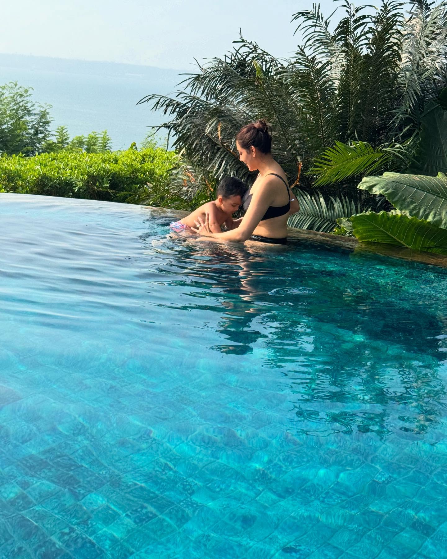 social media to share a heartwarming photo dump reflecting on her experiences in 2024. Among the collection of images, one stood out—a candid shot of her enjoying a moment in a swimming pool with her young son. This particular image quickly became a focal point for netizens, sparking a flurry of reactions online. Kajal, known for her grace and grounded personality, radiated confidence and joy in the picture, which beautifully captured her balance between embracing motherhood and celebrating her individuality.