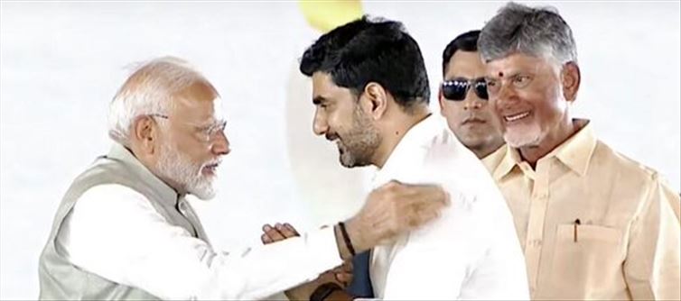 విశాఖ పట్నం ప్రధాని సభలో ఆసక్తికర సంఘటన చోటుచేసుకుంది. వేదిక పైకి వెళ్లే ముందు గ్రీన్ రూం లో ప్రధానిని ఆహ్వానించడానికి సిద్ధంగా ఉన్న మంత్రులను ప్రధాని మోదీ కలిశారు. ప్రధాని అక్కడికి రాగానే అందరూ ప్రధానికి నమస్కరించారు. వారందరికీ నమస్కారం పెట్టుకుంటూ వెళ్లిన ప్రధాని మోదీ నారా లోకేష్ వద్దకు వచ్చి ఆగారు.