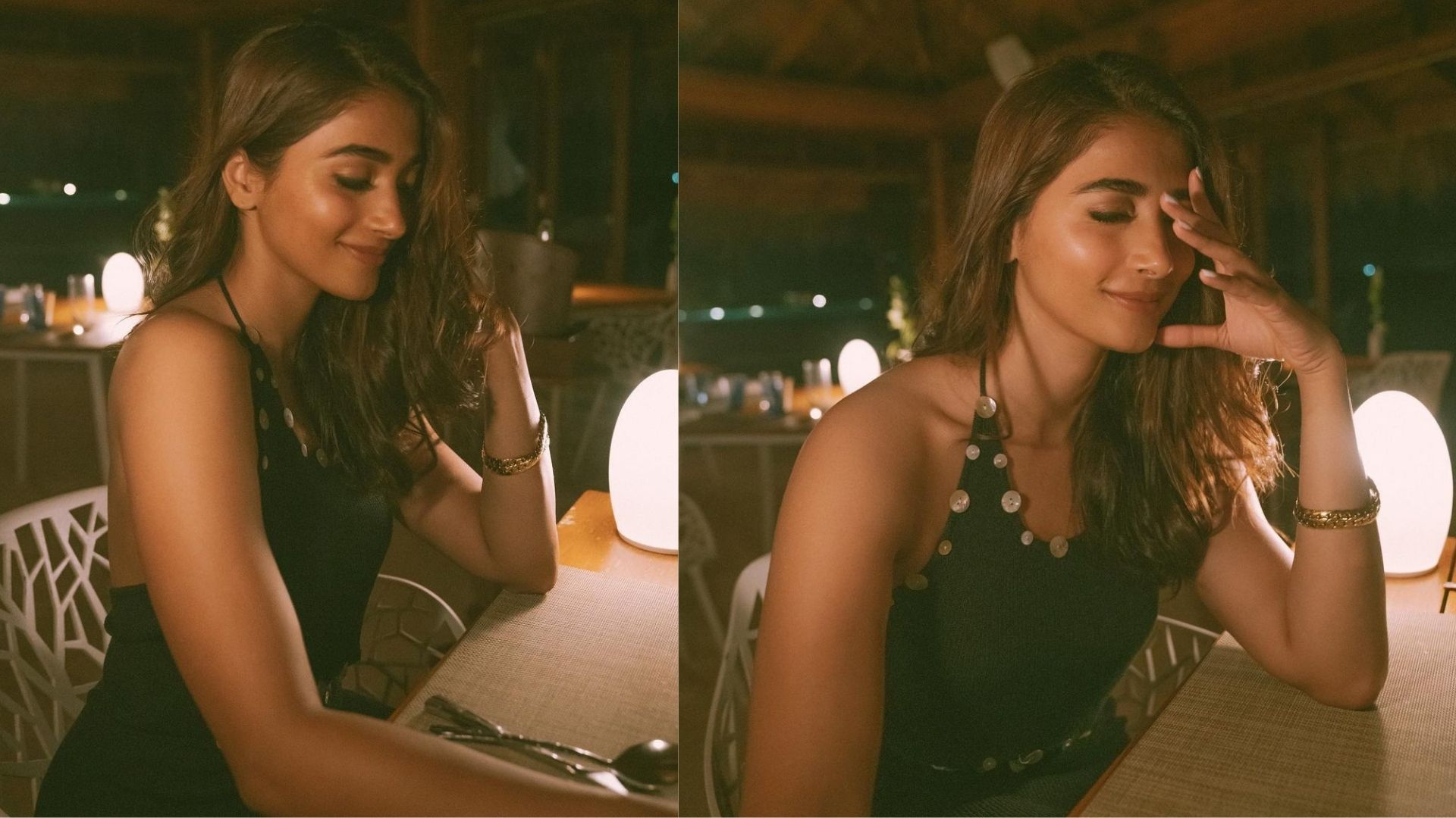 makeup and her hair cascading in soft waves. Against the backdrop of serene oceans, lush greenery, or bustling streets, Pooja's presence is magnetic, commanding attention with her innate elegance and radiant aura. Each photograph feels like a snapshot of a dream, as her fans marvel at her ability to make every moment look picture-perfect.