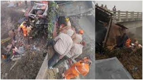 After this road accident near Tikonia, the police reached the spot and took out all the passengers from inside the bus. After this, more than 3 dozen people are reported to be injured. The police have sent all the injured to the hospital after the rescue. At the same time, the reason for the bus overturning is being told to be hitting the divider near Tikonia turn. Everyone has been rescued by the police present on the spot.