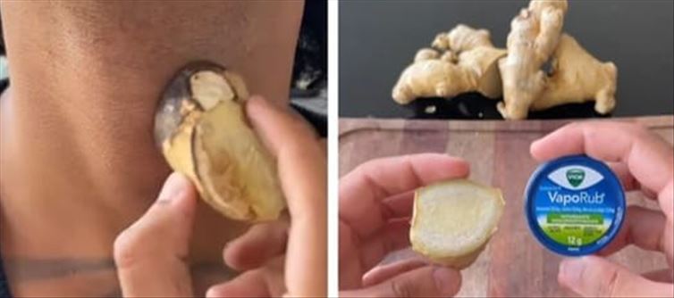 "Put ginger on your throat and thank me forever," the individual in the video stated, demonstrating how to use ginger and VapoRub as a "home remedy" to prevent sore throats. 'We don't attend hospitals or spend money on drugs,' I learned from a Chinese guy. This home treatment was discovered by the Chinese. Look at this bit of ginger. It will prevent soreness and irritation in your throat. Every home should have this well-kept secret on hand: ginger relieves sore throats and has antibiotic qualities for serious situations. vitamin B6, copper, potassium, and magnesium are all found in ginger, which helps to strengthen immunity.