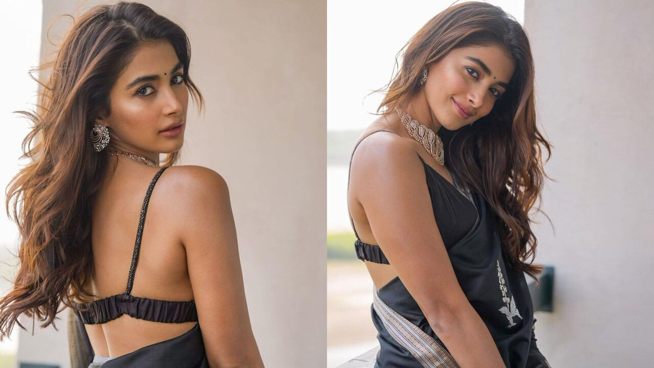 Pooja attracted heads in a seductive saree by Shanti Benaras with charcoal embroidery. She accessorized it with a shirt with ribs in the back and a plunge neck. The elegant straps of the sleeveless blouse were embroidered, giving her ensemble a touch of shine. pooja accessorized the plunging neckline with a stone-encrusted choker and coordinating danglers.