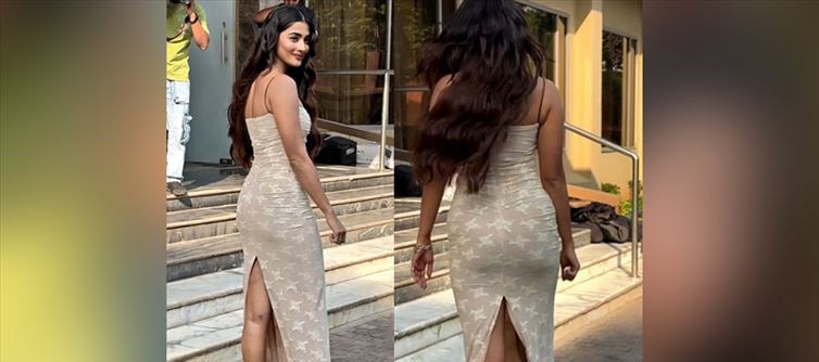 Not to mention her hair, which had a carefree diva aura with its gorgeous cascade of waves that cascaded freely down her shoulders. pooja once again showed her ability to strike the perfect balance between subtle elegance and just the appropriate amount of drama with this ensemble. She is inspiring us all to pay attention, whether it is through her Montsand dress, stylish accessories, or immaculate glam. Her back was exposed in this tight dress.