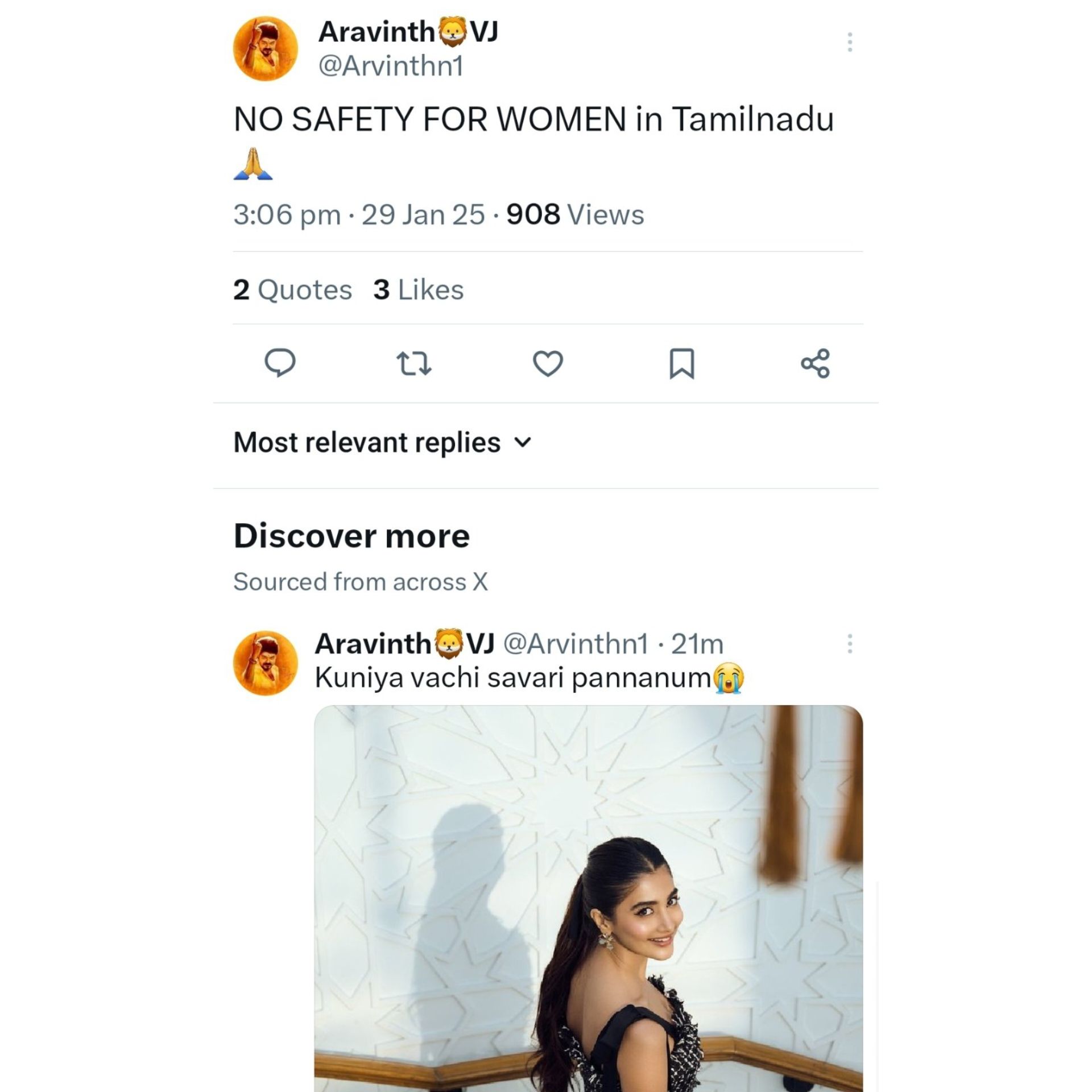 women in Tamilnadu" and just a few minutes later he posted with