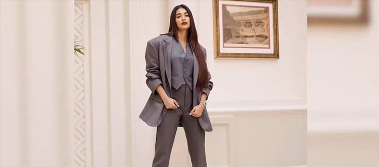 deva actress, who wore a structured three-piece gray suit, totally dominated this closet moment. Wearing a sharply fitted gray three-piece suit,