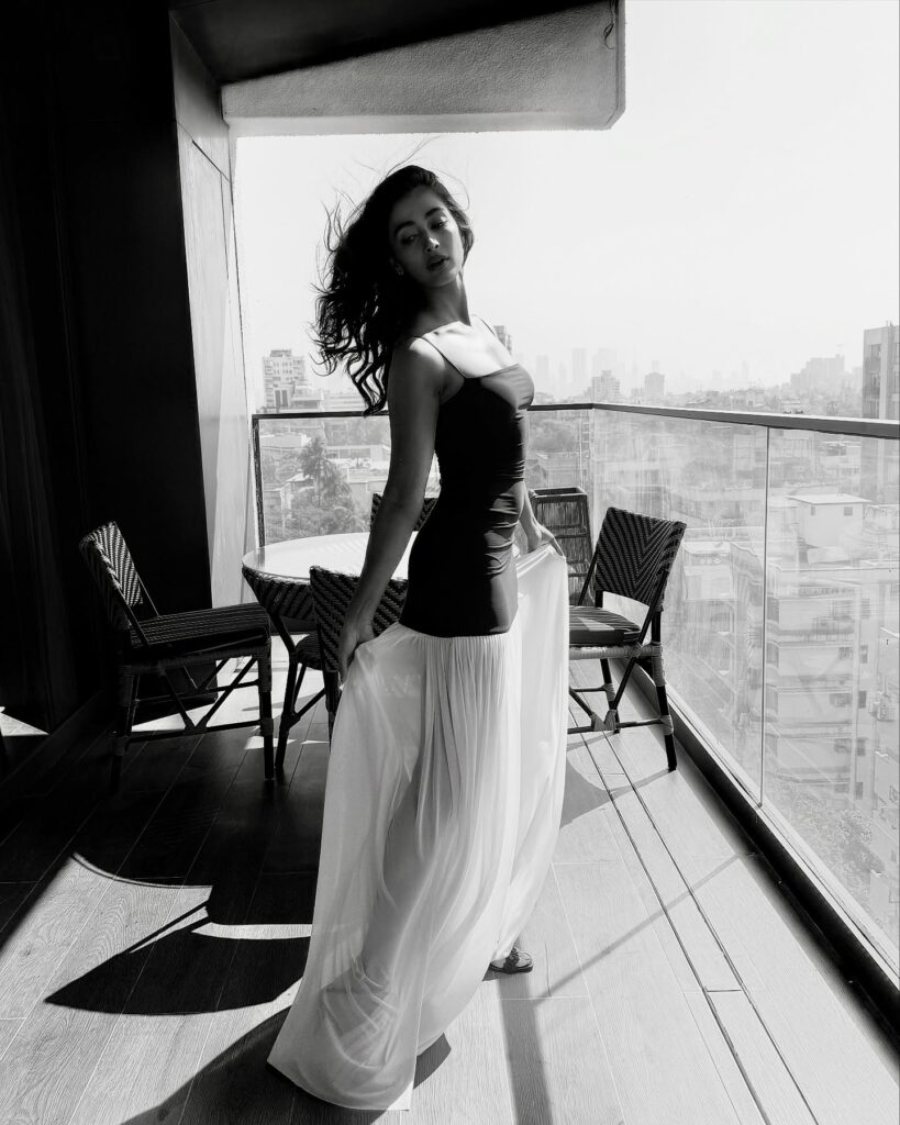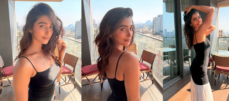 pooja Hegde’s effortless sense of fashion has always been a highlight of her public appearances, and her most recent look is yet another testament to her undeniable charm. Dressed in a striking black-and-white sleeveless outfit, she exudes confidence and elegance while posing gracefully on a balcony.