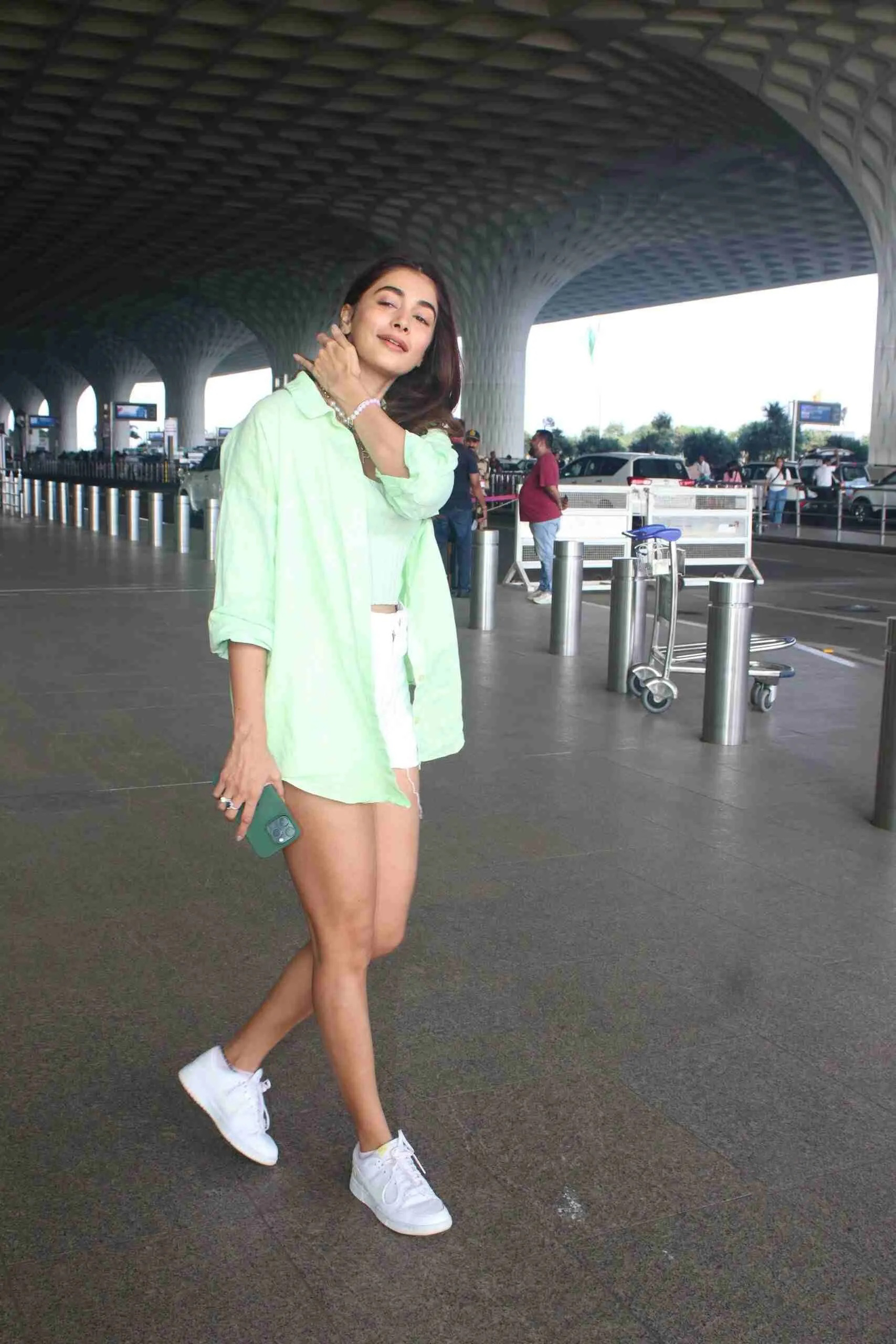 pooja took a moment to acknowledge the photographers and fans. With a warm smile and graceful demeanor, she patiently posed for a few pictures, allowing the shutterbugs to capture her in all her glory.