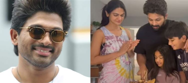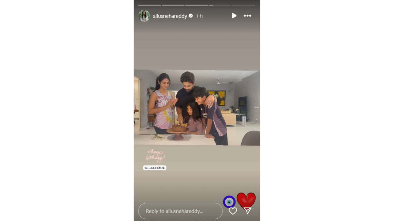 Sneha Reddy, Allu Arjun's wife, shared a memorable photo from the former's birthday party at home on her instagram stories, showing him cutting the cake while surrounded by his spouse and children.  To wish her husband a happy birthday, the famous wife put a "Happy Birthday" sticker on top of the photo.