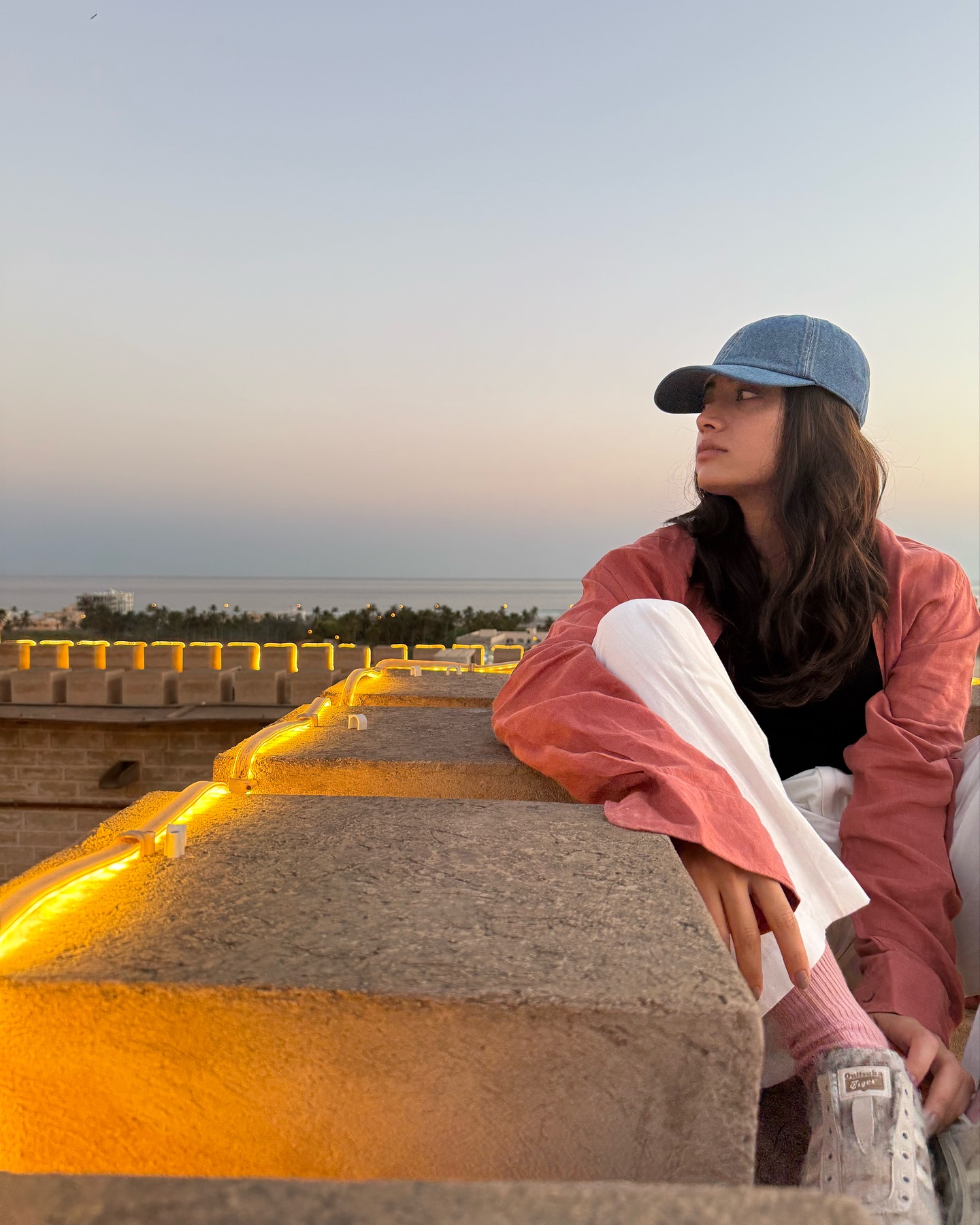 rashmika mandanna recently treated her fans to a slice of paradise with a dreamy snapshot from her trip to Oman, and it's safe to say she did it in style. Dressed in a chic black tank top layered effortlessly with a vibrant red shirt, paired with crisp white pants and comfy sneakers, she exuded laid-back vacation vibes. The look was completed with a cool blue hat that added a playful pop of color to the outfit. Her relaxed, yet fashionable ensemble perfectly matched the scenic backdrop, proving once again why she’s considered a style icon both on and off the screen. Captured during the golden hour, Rashmika’s sun-kissed photos radiated warmth and calm, with soft light accentuating her natural beauty. These candid moments, whether of her strolling through picturesque spots or simply enjoying a quiet moment under the sun, gave fans a refreshing peek into her downtime. It's evident the actress is soaking in some well-deserved rest before diving headfirst into her next cinematic journey. Her travel updates have become a favorite among followers, who can’t get enough of her ability to seamlessly blend wanderlust and personal charm. As for what’s next, rashmika is gearing up for her upcoming film Girlfriend, a project that has already sparked curiosity with its intriguing title and her involvement. While details remain under wraps, anticipation is steadily building. Whether she’s unwinding on a serene beach or lighting up the silver screen, rashmika continues to capture hearts with her effortless grace. Her ability to maintain that balance between globe-trotter and hardworking performer makes her one of the most relatable and admired stars of her generation.