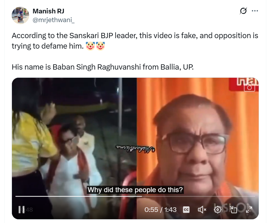Baban Singh Raghuvanshi, a bjpleader from Ballia, Uttar Pradesh, has found himself at the center of a controversy after a video surfaced online showing a young woman dancing provocatively while sitting on his lap. The video, which quickly went viral across social media platforms, has sparked outrage and disbelief, particularly because Raghuvanshi is known for projecting a "sanskari" (traditional and moralistic) image in his political and public life. The footage stands in stark contrast to the values he claims to uphold, and it has triggered widespread criticism from both the opposition and the public. In response to the viral video, Raghuvanshi dismissed it outright, claiming that it was doctored and part of a conspiracy to tarnish his reputation. He labeled it as “fake” and demanded a forensic investigation to clear his name. However, many netizens were quick to point out the clarity and consistency of the visuals, which they argue leaves little room for doubt.