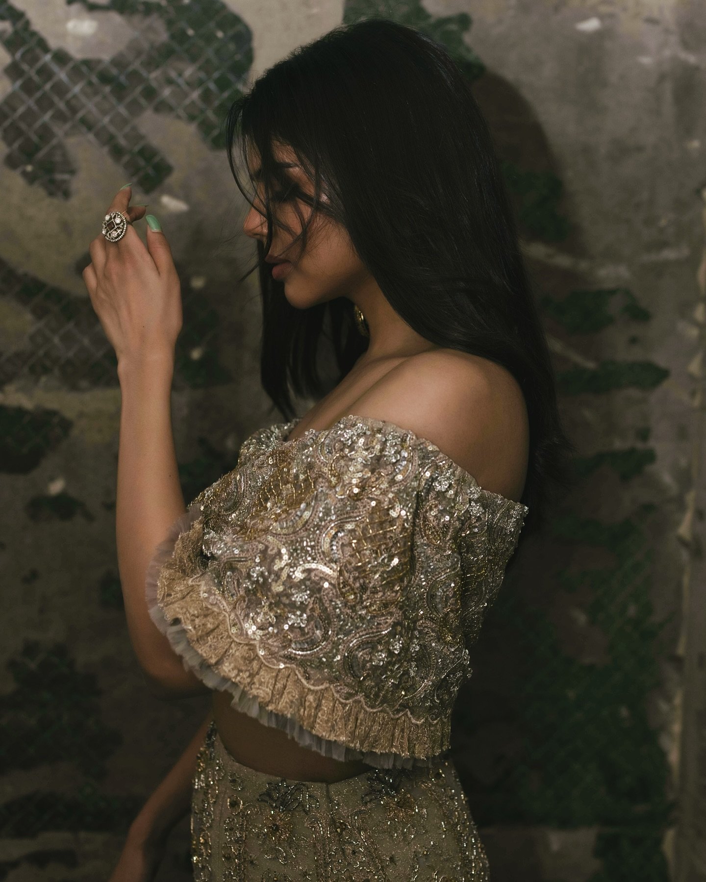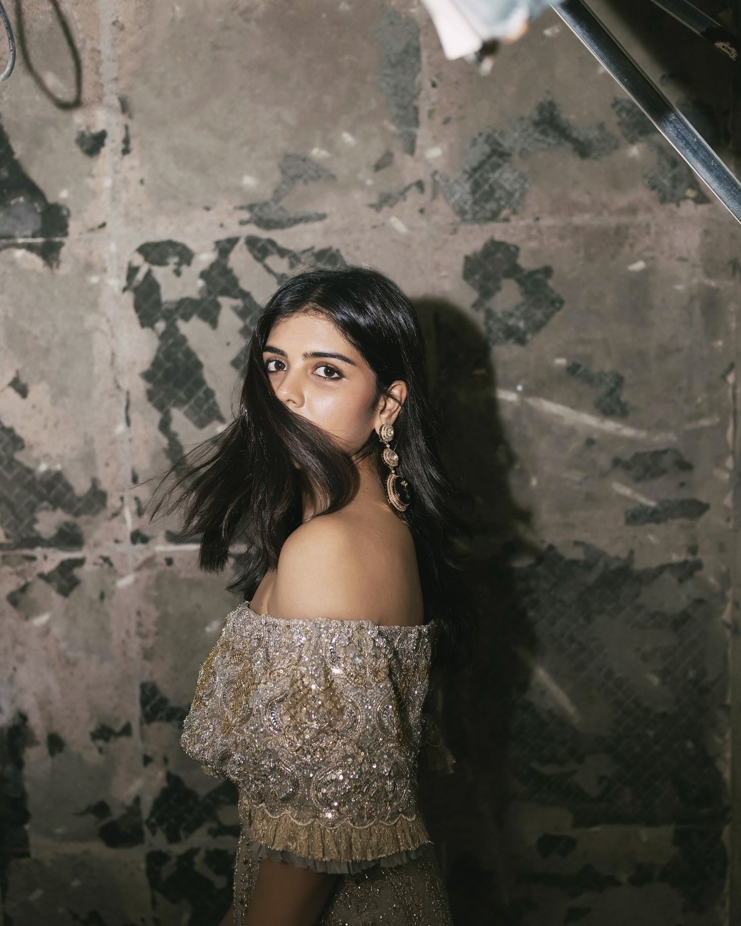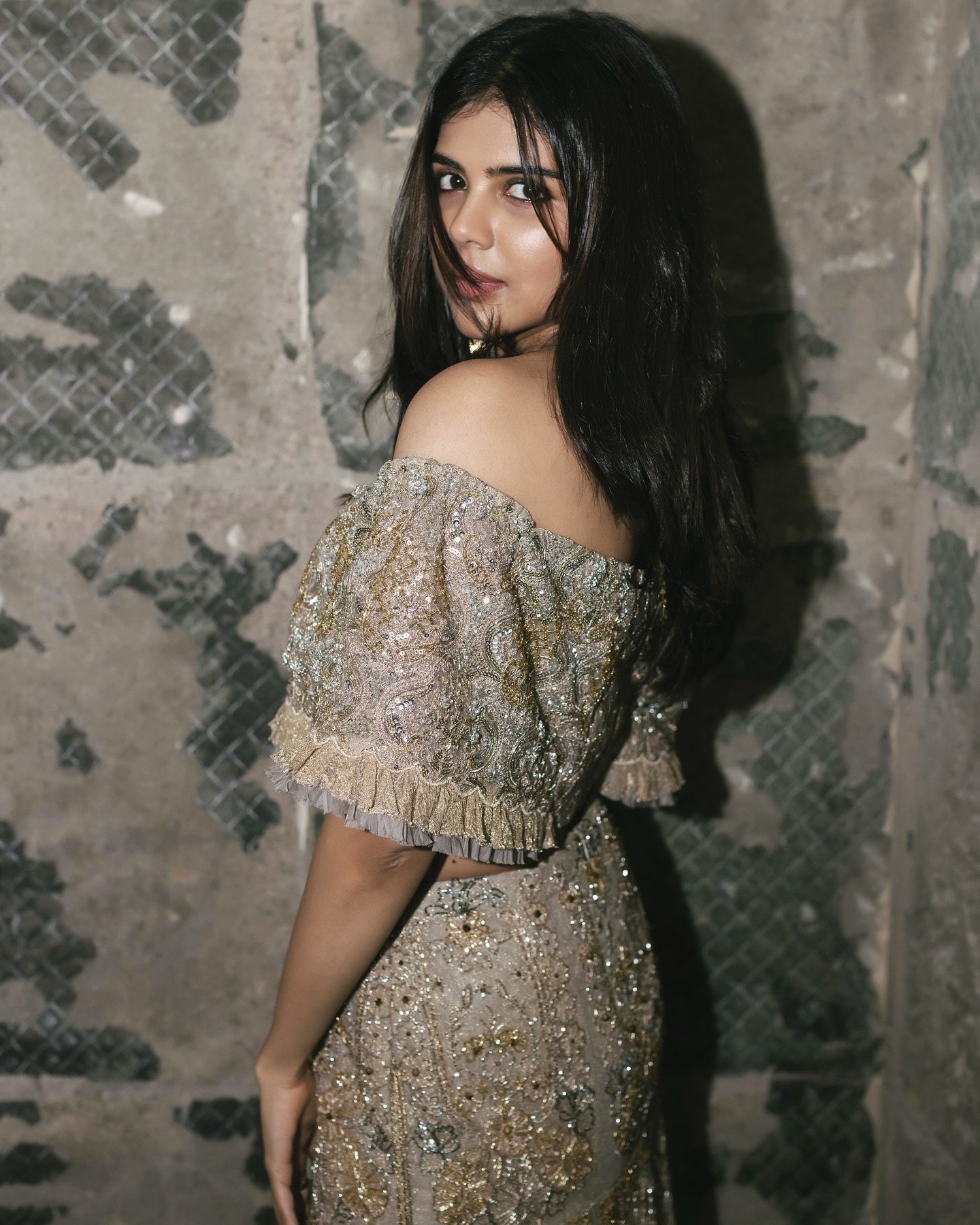 In her latest photoshoot, however, kalyani surprised fans with a bold new look that departs from her typically graceful aesthetic. Dressed in a gold shoulder-drop top paired with a matching skirt and chunky statement earrings, she exuded a raw, edgy charm that instantly grabbed attention. It’s a look that balances glamour with a hint of rebellion, showcasing her ability to take fashion risks and pull them off with ease.