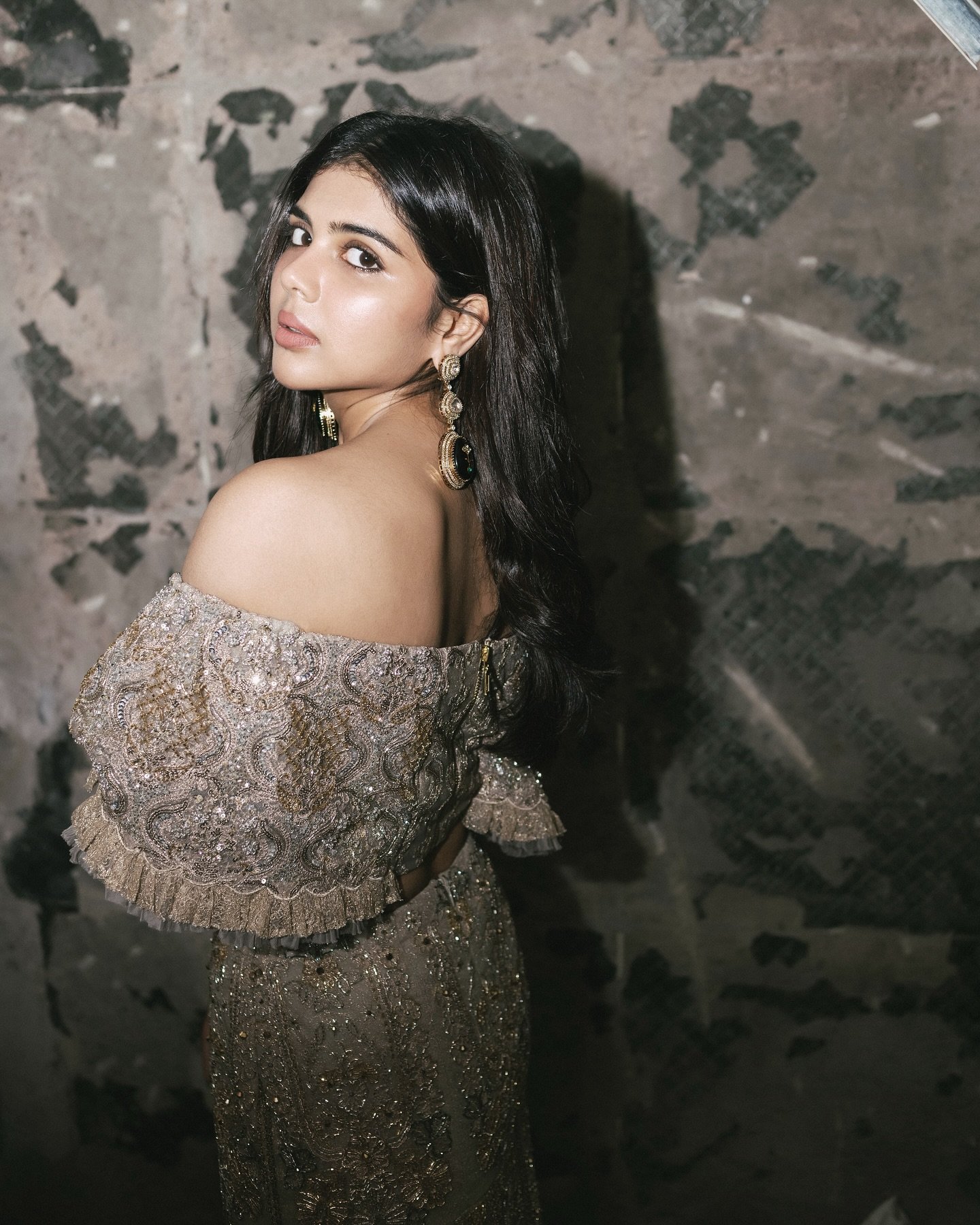 The result is a raw, magnetic look that highlights Kalyani’s evolving presence as both a fashion icon and a performer. The gold ensemble, with its sharp silhouette and vibrant hue, speaks volumes without needing layers of embellishment. Her face, effortlessly expressive, draws the viewer in with a mix of poise and power.
