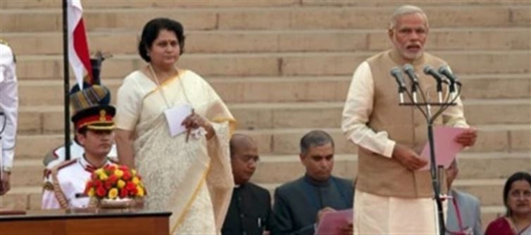 The bharatiya janata party won a broad mandate in the 2014 elections, which led to Modi's swearing-in.  On its own, the bjp secured 282 seats, a massive mandate not seen since 1984.  With only 44 seats, the congress was in a tight spot while the NDA's number increased to 336.  The attendance of South Asian nations, such as afghanistan President Hamid Karzai, Sri Lankan Mahinda Rajapaksha, and Pakistan's then-Prime minister Nawaz Sharif, was the main event of PM Modi's swearing-in in 2014.