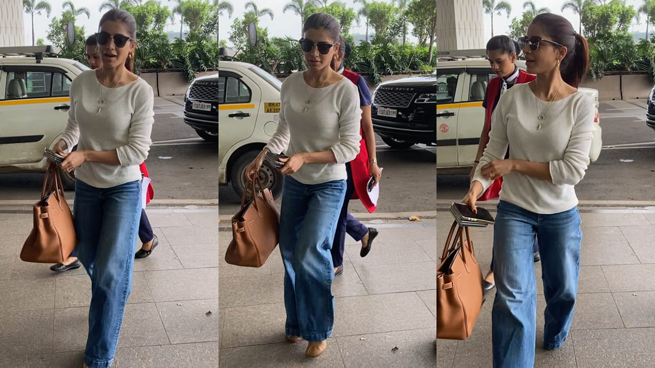 mumbai airport while sporting a round-necked, full-sleeved knit top. The top was ideal for maintaining a casual look without sacrificing style because of its lightweight fabric. This outfit choice seems to be the best way to look laid back yet not uninteresting for everything from