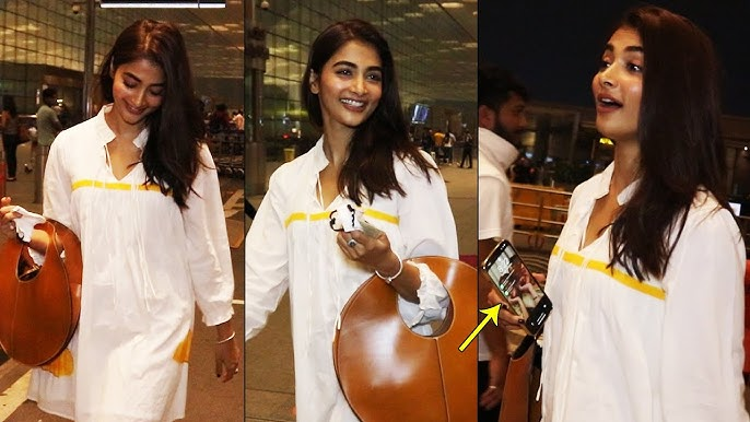 pooja, caught off-guard by the shout, paused, looked back, and gave the cameras a warm, genuine smile. The shy moment quickly turned endearing, with her small gesture making a big impression on both fans and photographers alike.