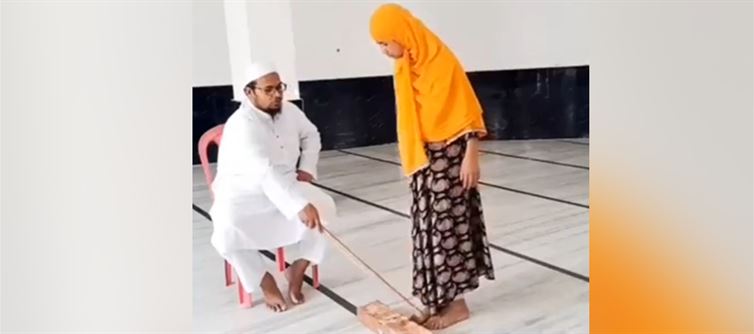 Subtitles in the video include phrases like "Utba mila ghensa maula ali ko" and "Aanke kholi to dekha kahle nabi ko," which suggest a religious or cultural context, possibly related to Islamic teachings or practices. The preacher's use of the stick to physically guide the girls' movements has been interpreted by some as a form of discipline, leading to accusations of authoritarianism.